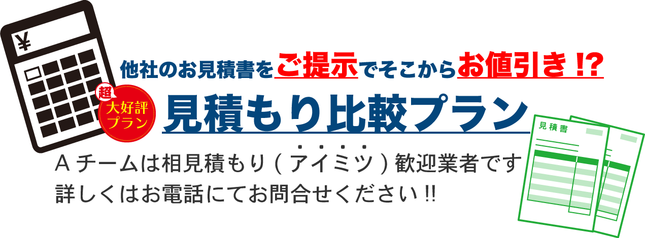 ぜひ、低価格で定評のあるAチームの見積もりと比べてみてください。