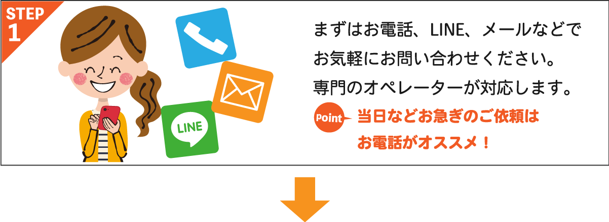当日のご依頼は混み合うことが予想されるので予定がお決まりでしたら、お早めのご連絡をオススメしています。