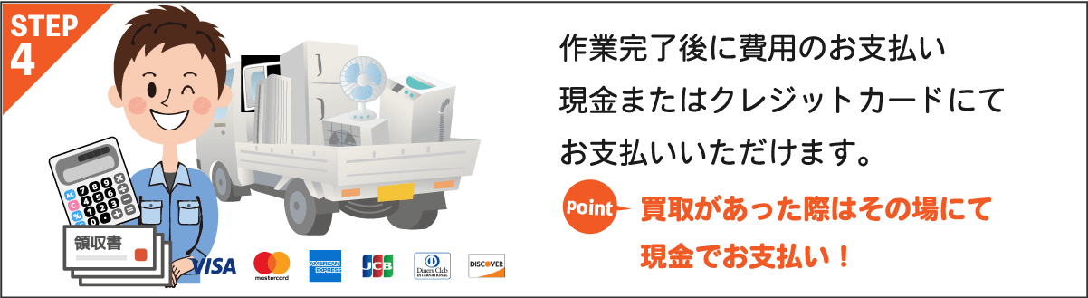 現地で積み込み前にも詳細のお見積もりをしっかり行ってから作業に入りますので請求金額が変わることは絶対にありません。